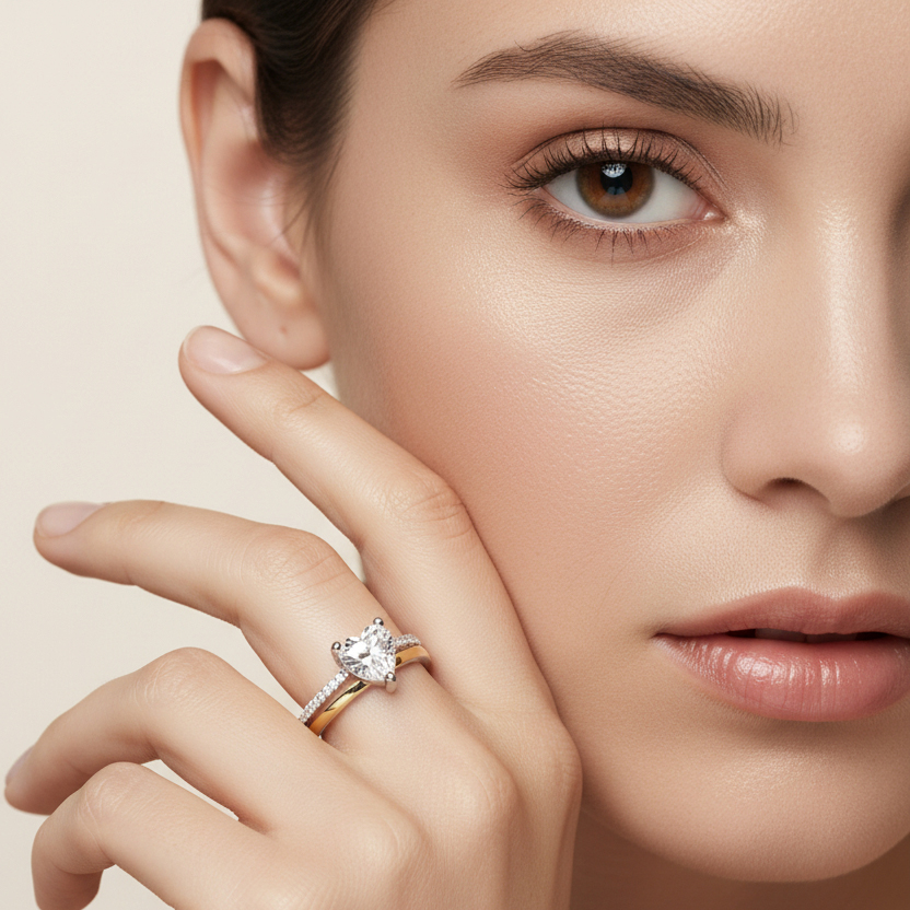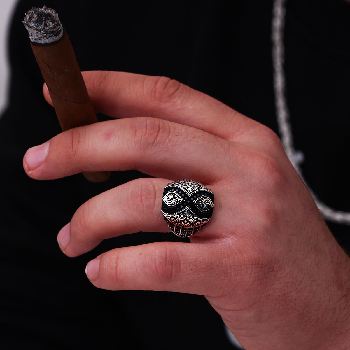 Royal Halo Aura | Brilliant Round-Cut Center Stone and Triple Pave-Set Band 925 Sterling Silver Ring